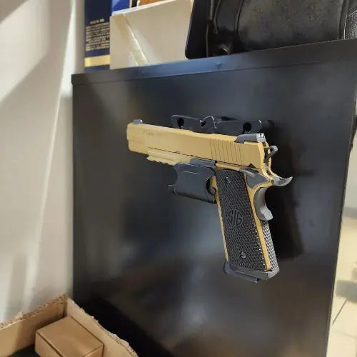 Our Magnetic Pistol Mount is designed to be compatible with a wide range of firearms. It will securely hold and protect your Glock, Smith & Wesson, SIG Sauer, Beretta, Ruger, Springfield Armory, Heckler & Koch (H&K), Walther, Taurus, Canik, Kimber, CZ, revolvers and more! It will even hold some types of shotguns.