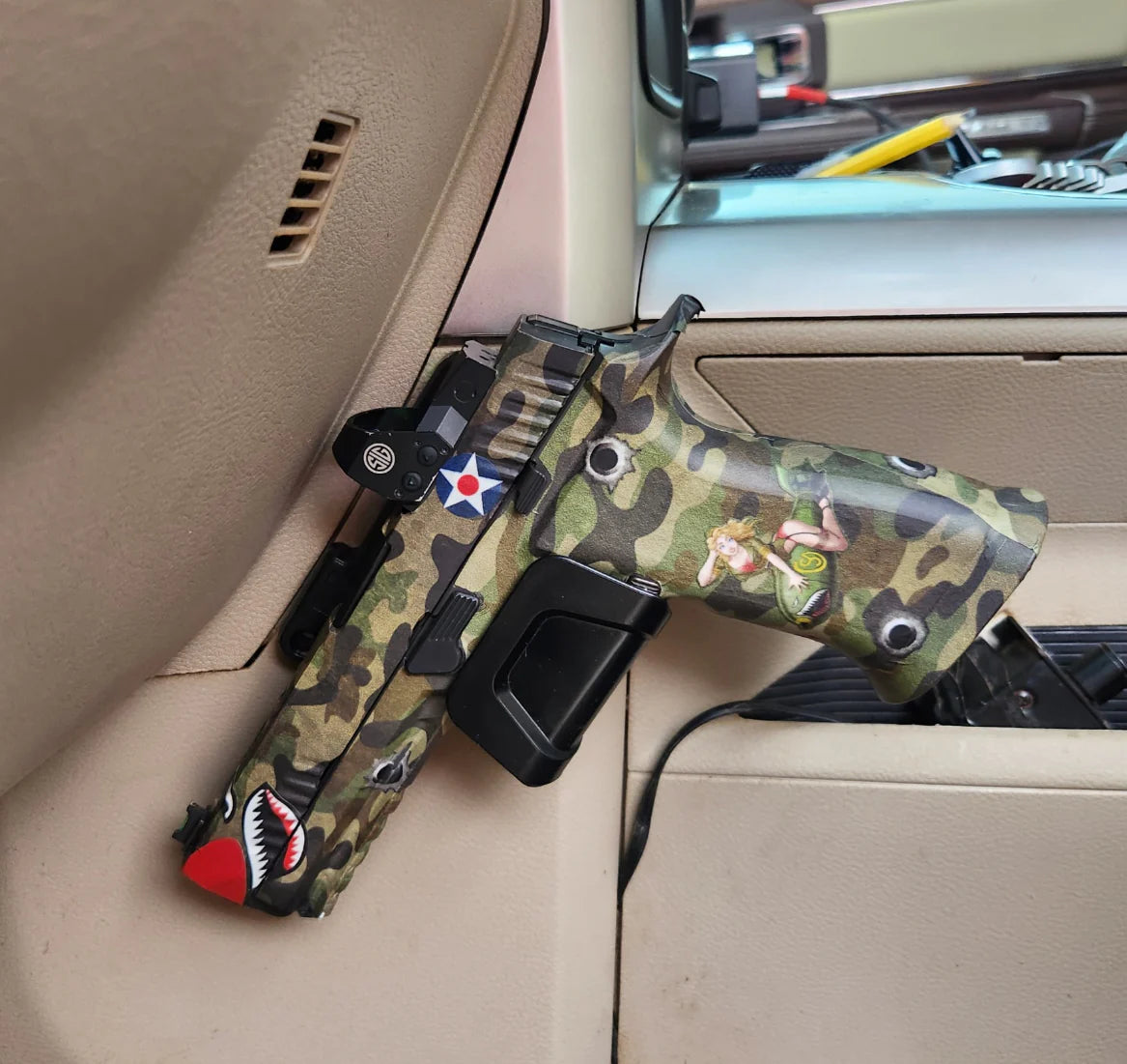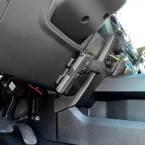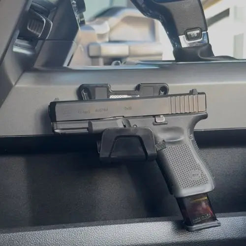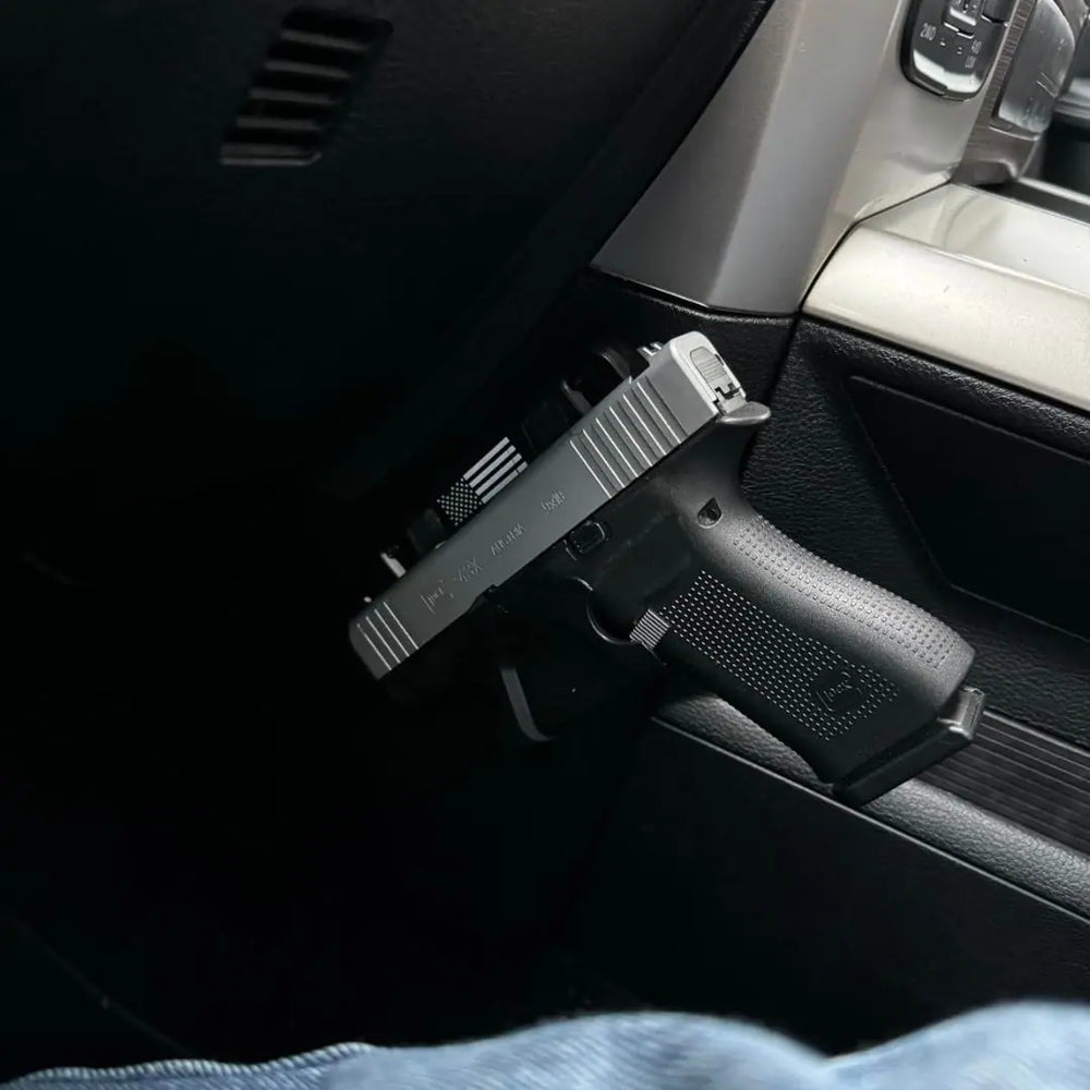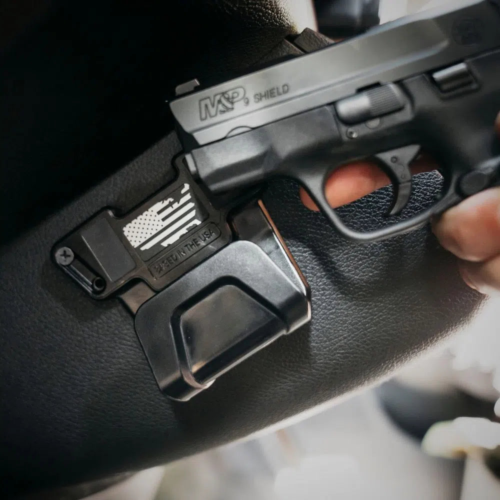 Carrying in your car doesn’t have to mean weak magnets or exposed triggers. Our Magnetic Pistol Mount gives you safety, comfort and speed in one.