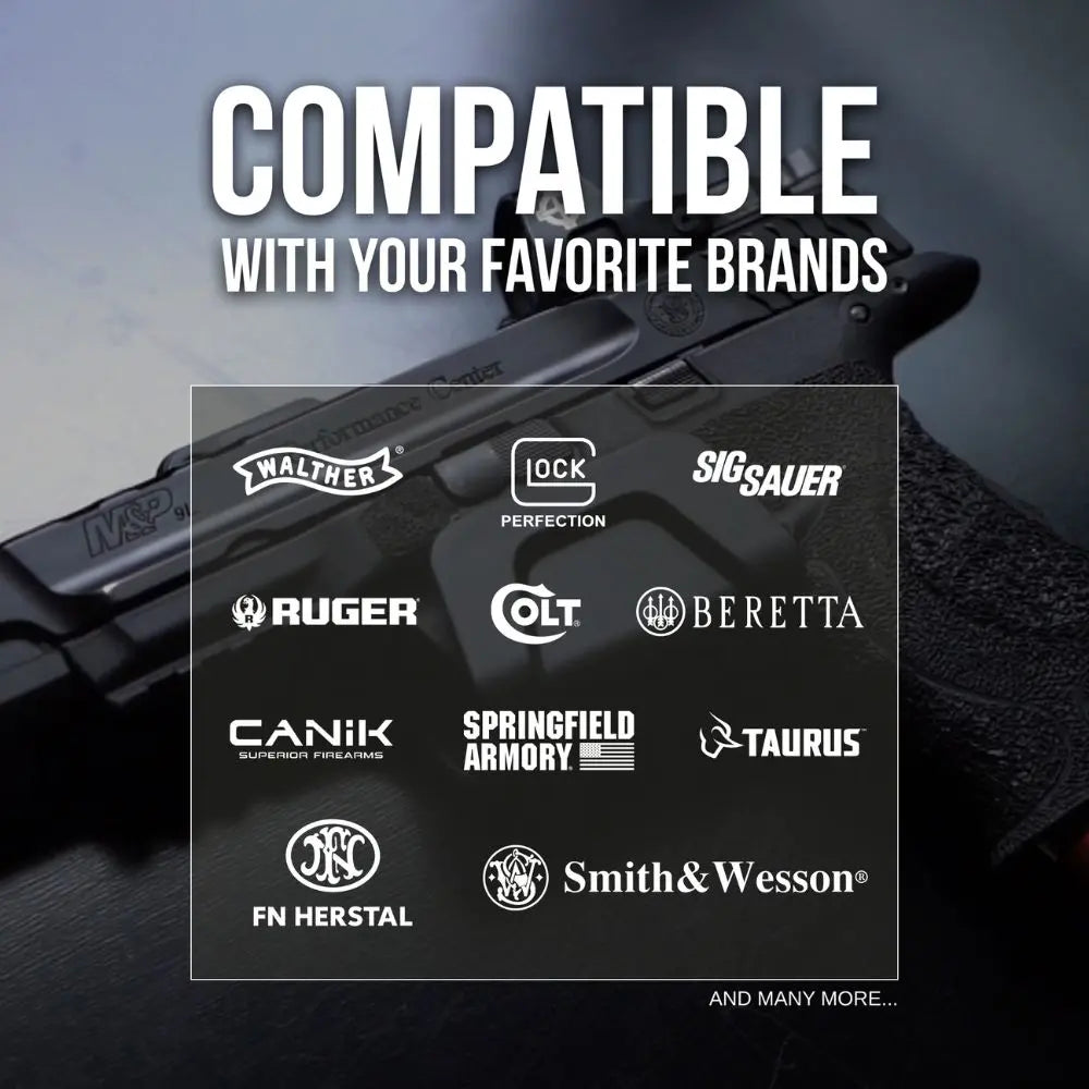 One Mount. Endless Compatibility. Our magnetic mount is designed to work with the most popular handgun brands out there and even some shotguns. Check the FAQ for more information.
